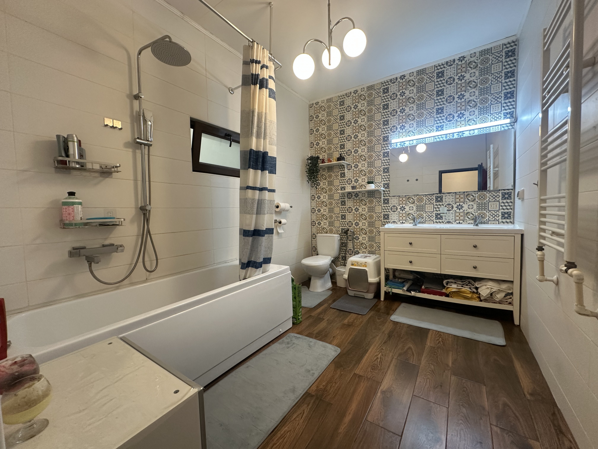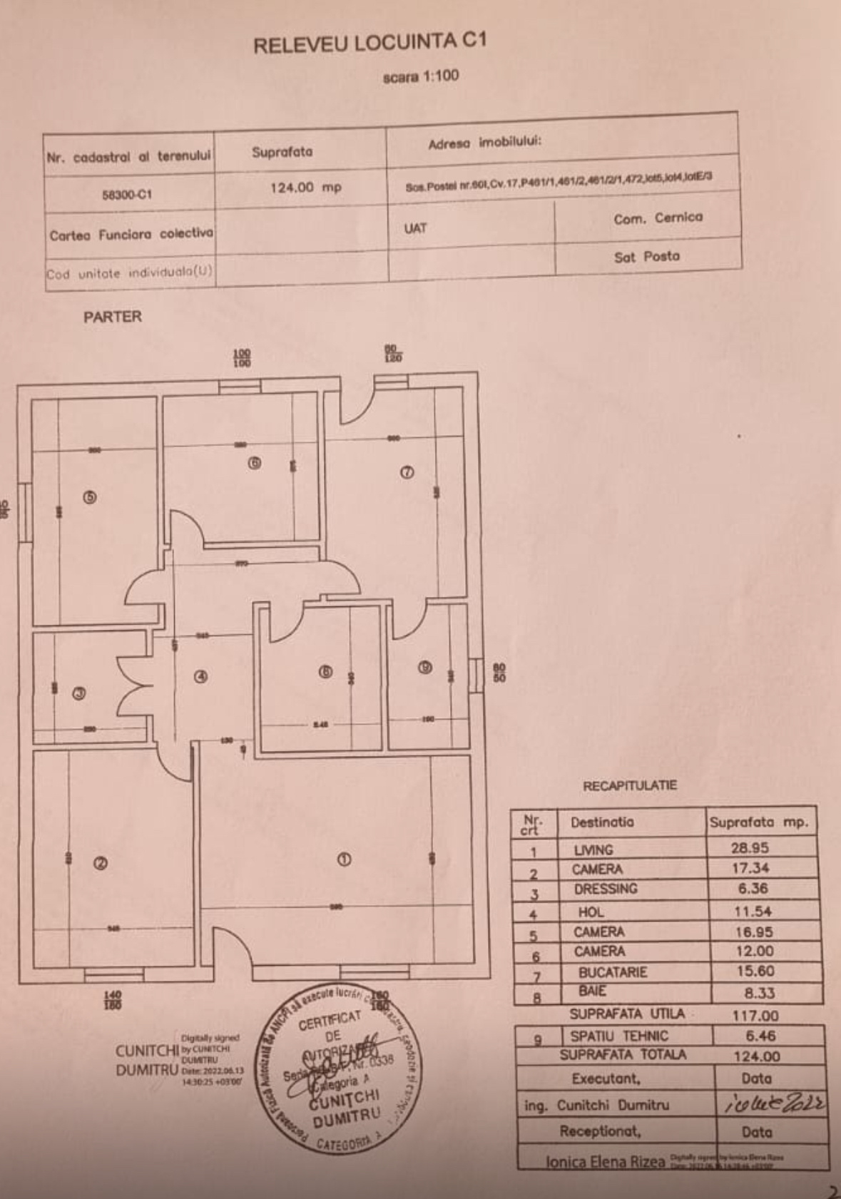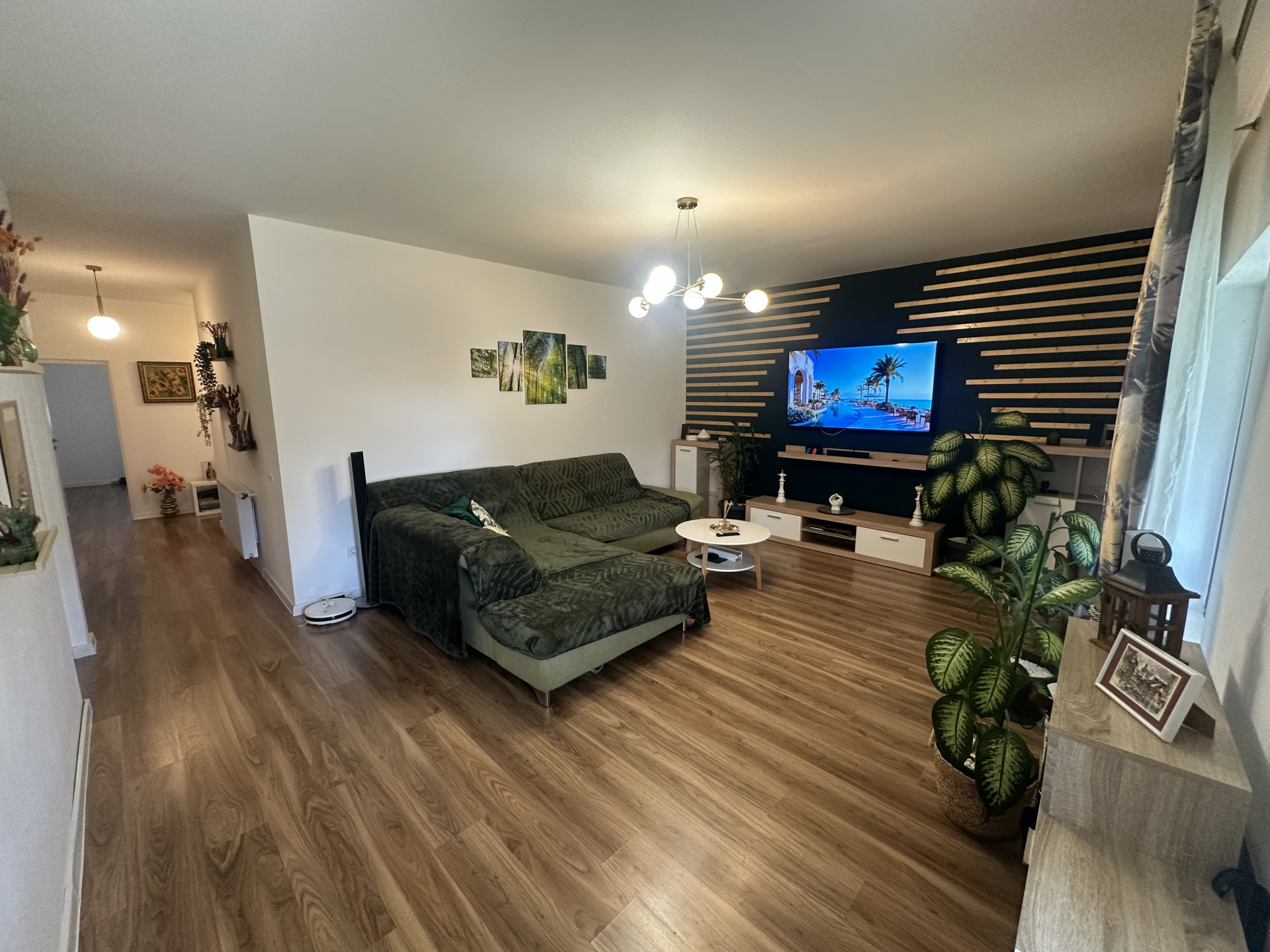 Casa este total mobilata si utilata, are 4 camere: Living spatios, trei dormitoare luminoase, 2 dressinguri, bucataria mare cu camara, are iesire catre terasa din spatele casei, camera tehnica cu centrala termica si boiler, baie mare cu fereastra.